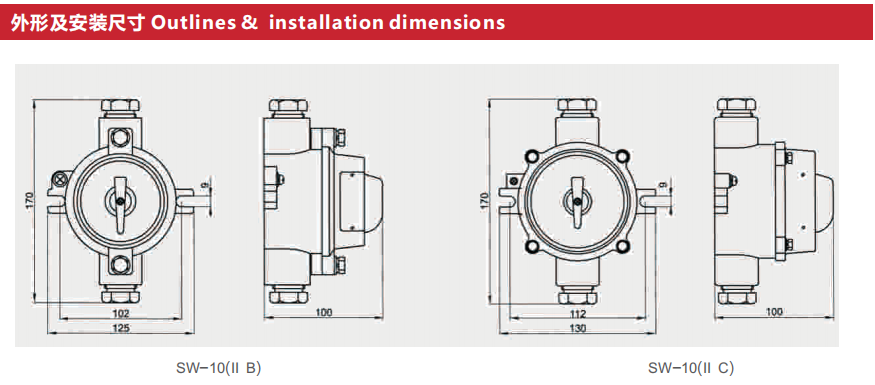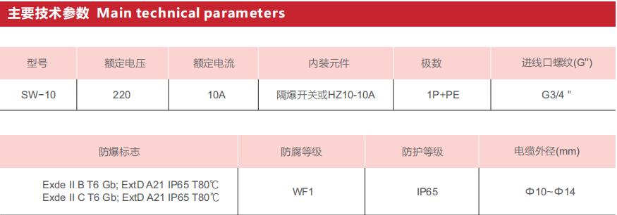 ●B級內(nèi)裝隔爆開關(guān)元件,ⅡC級內(nèi)裝HZ10組合開關(guān)