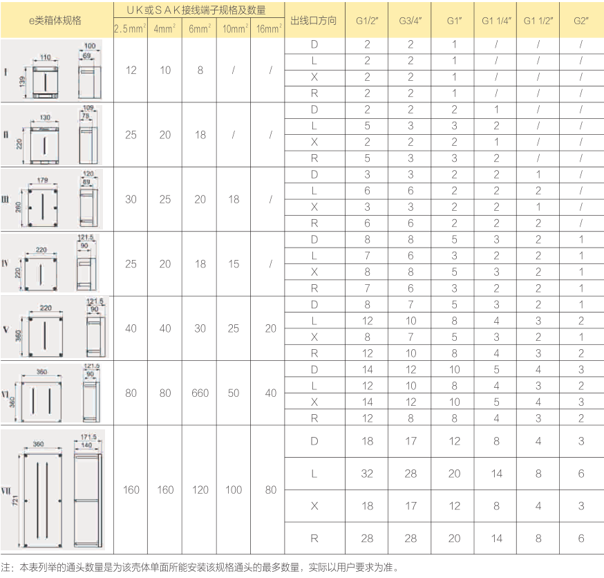● 進(jìn)線口方向變化多端,可根據(jù)用戶要求任意選配進(jìn)線口,也可配裝電纜夾緊密封接頭(注:用戶在訂貨時(shí)須注明);