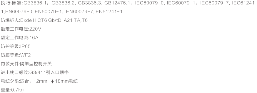 ● 適用于IIA、IIB、IIC類爆炸性氣體環(huán)境;