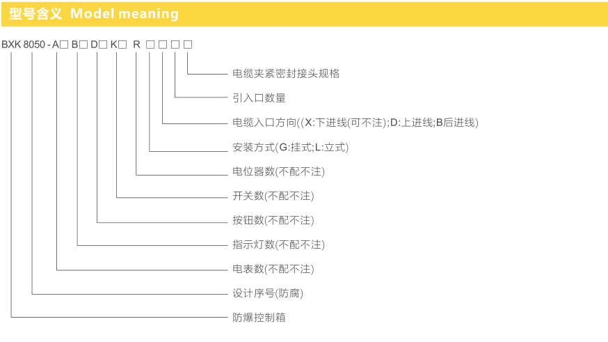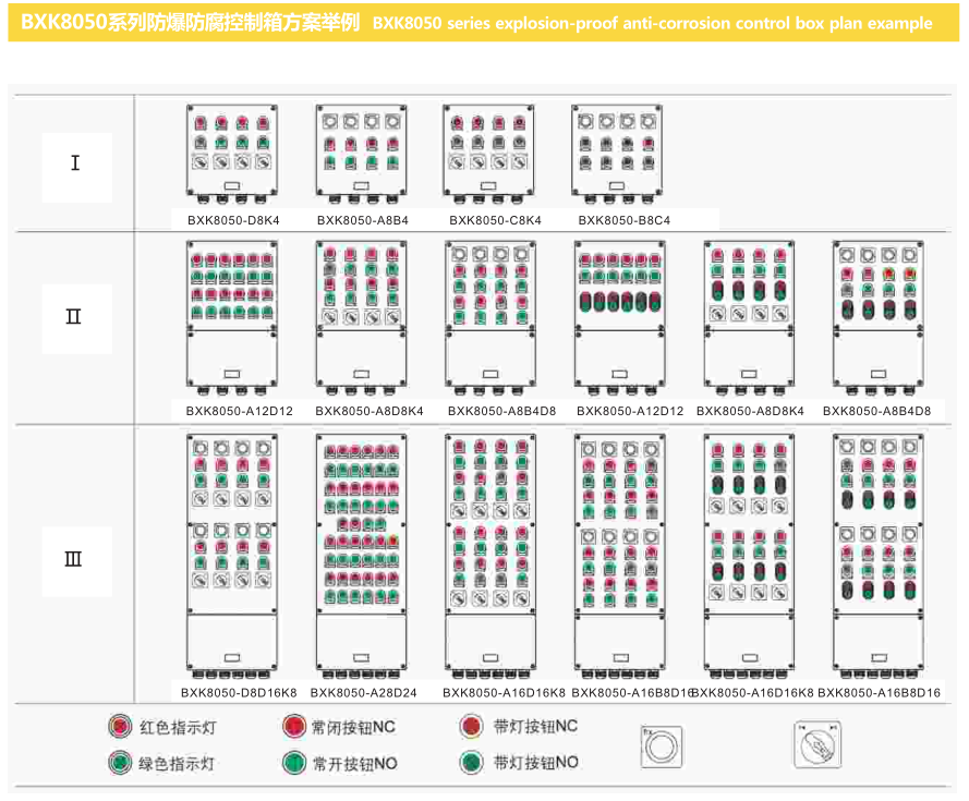 ● BXK8050系列防爆控制箱適用于交流50Hz、220/380V直流電壓至220V的線路中,遠距離集中控制多臺電動機的起動與停止;